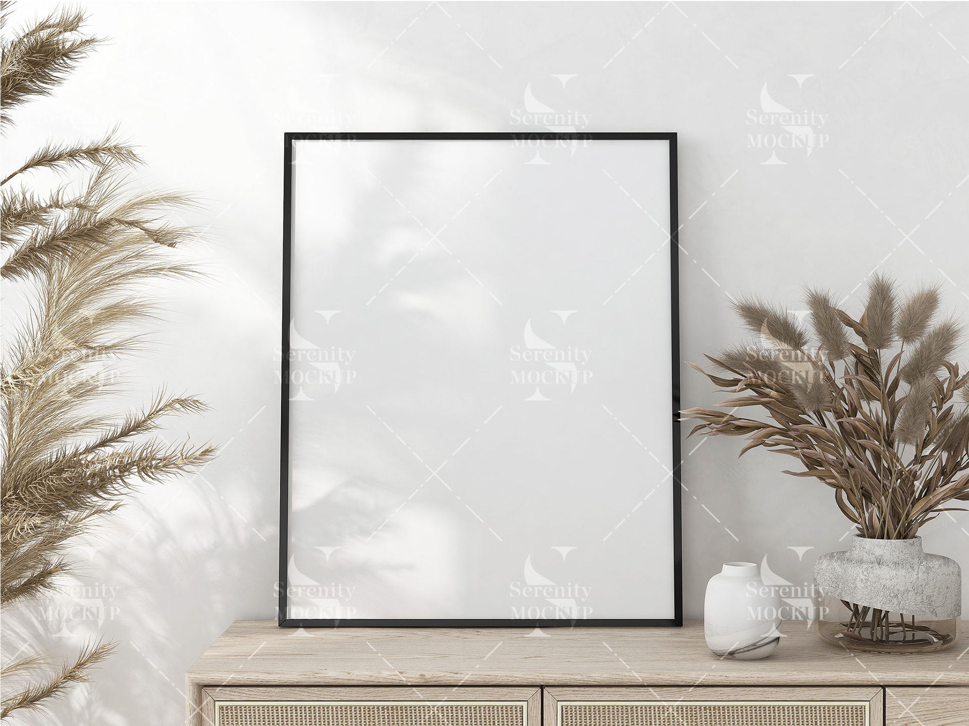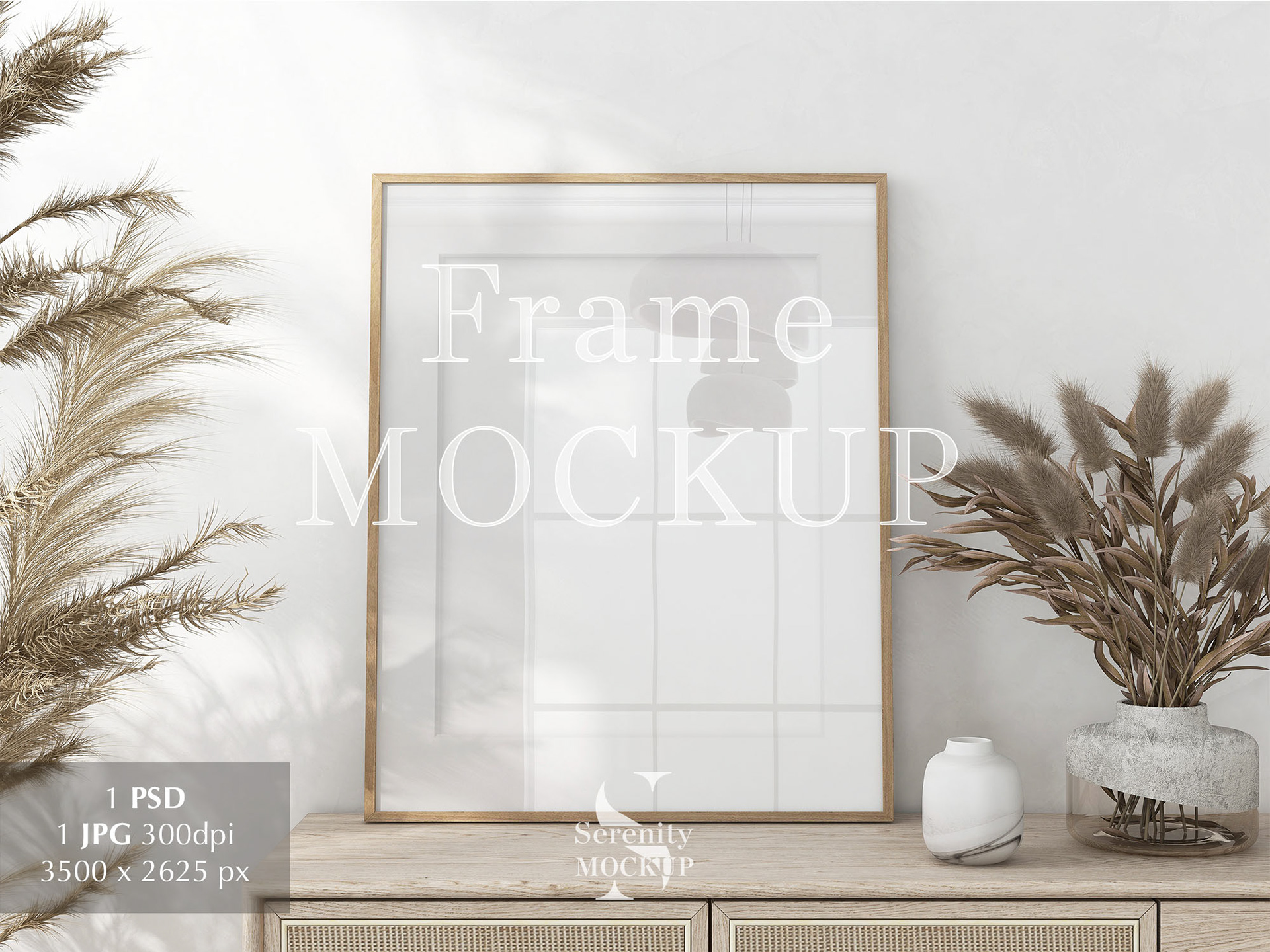 Single Frame mockup on console | white wall Boho style
